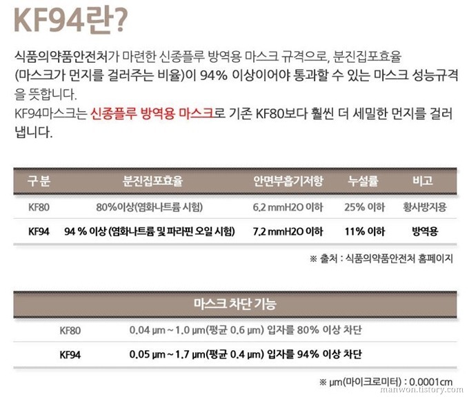 N95나 KF94는 일정 수준 이상의 크기의 미세 먼지를 숫자에 쓰인 만큼의 퍼센트로 막아주는 마스크를 뜻해요.