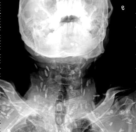 아래에 혐오스러울 수 있는 엑스레이 사진이 있으니, 자신 없으신 분은 스크롤하지 말고 뒤로 가기 하세요.